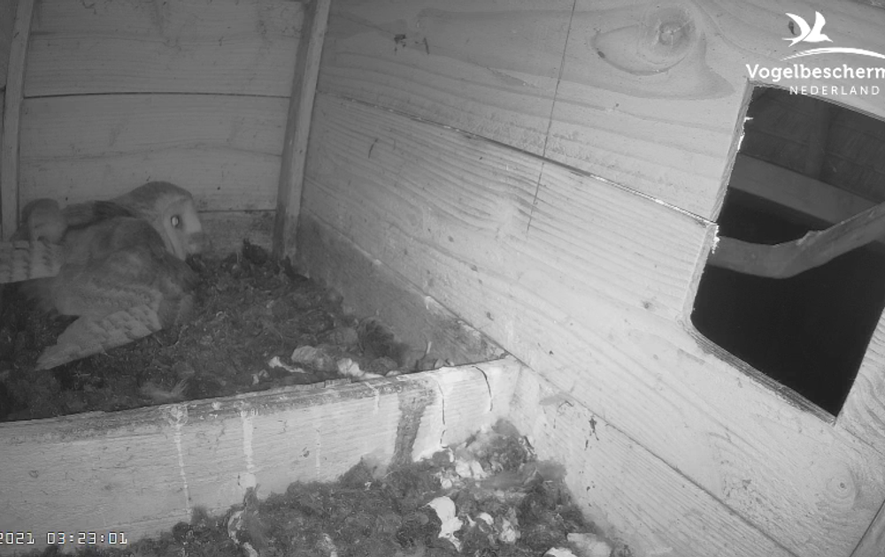 Weer is er een vreemde uil te zien en het vrouwtje heeft er schijnbaar vrede mee.