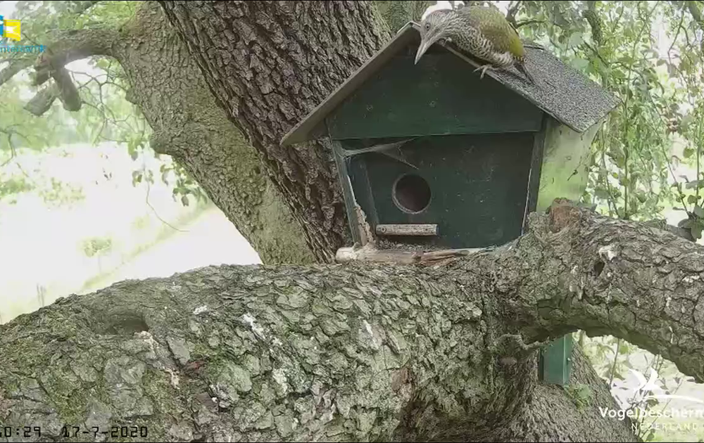 Weer een jonge groene specht bij de nestkast.