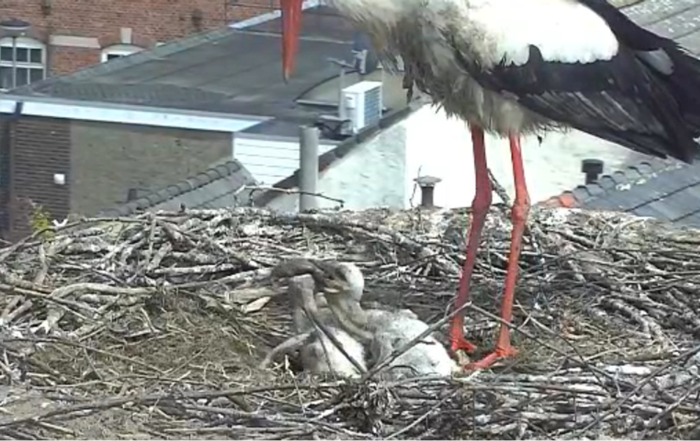 Als de kuikens nog klein zijn krijgen ze meestal klein voer, wormen of kleine visjes. Nu komt Ma met een iets grotere prooi aan. Wat het is is niet duidelijk. Maar kuuk heeft er zichtbaar moeite mee.