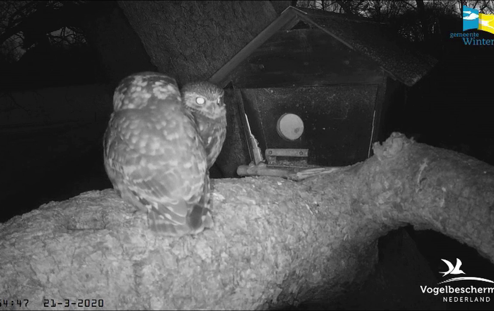 Een nieuwe lente, een nieuw geluid. In dit filmpje produceert vrouw steenuil 10 keer een snerpend geluid. Dit heet "bedelsnurken" en dat doet vrouw om man aan te sporen voedsel te halen. Man is er een meester in zich weinig tot niets van het gesnerp aan te trekken, dus het bedelsnurken zal nog vaak te horen zijn.