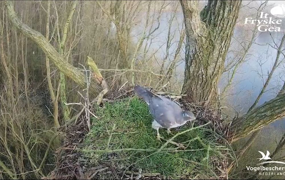 De haviken zijn al dagenlang niet op het nest gezien. Maar in de ochtend van zaterdag 23 februari was daar toch het mannetje weer. Binnen anderhalf uur bracht hij maar liefst 12 takjes.