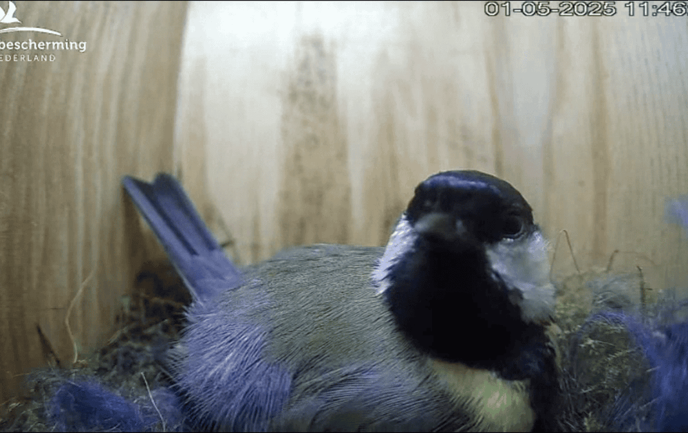 Een wat rustiger clipje op deze warme lentedag. Dit weekend kunnen we nog van een geduldig broedende vrouw koolmees genieten voordat de hel losbreekt - oftewel de gezinsuitbreiding met maar liefst zeven(?) onverzadigbaar hongerige snaveltjes plaatsvindt. Vrouw heeft voorlopig genoeg tijd om elke centimeter van de nestkast te bekijken wat ons af en toe beelden van een leuke staredown met de camera oplevert.