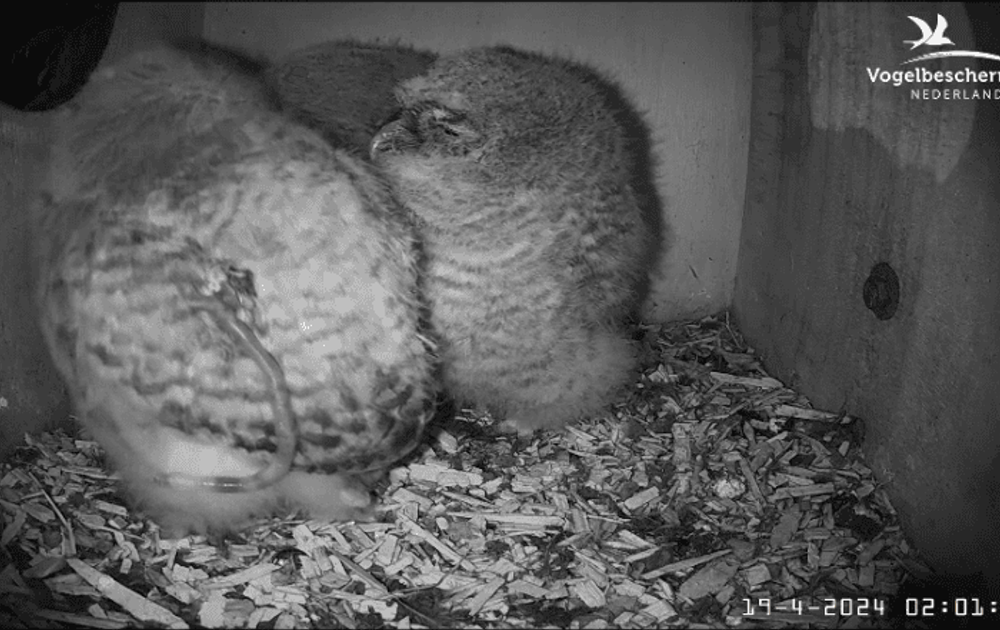 Vrouw bosuil komt weer eens met een regenworm aanzetten. Flink gefladder als altijd in de kast als er een prooi komt.