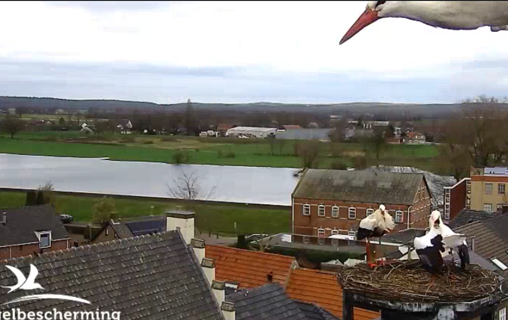 Het identificeren van bezoekers van het nest is altijd lastig. Leo heeft pas in zijn blog “Wie is nou wie, ik snap er niks meer van !!” kort uitgelegd wie de verschillende spelers zijn. Maar op het moment dat er bezoekers komen gaat het allemaal zo snel (en de ooievaars lijken zo op elkaar) dat het nog steeds niet duidelijk is. Vertraagde, ingezoomde en stilstaande beelden geven iets meer inzicht, maar garantie wie wie is, kunnen we alleen geven als we ringnummers kunnen aflezen.