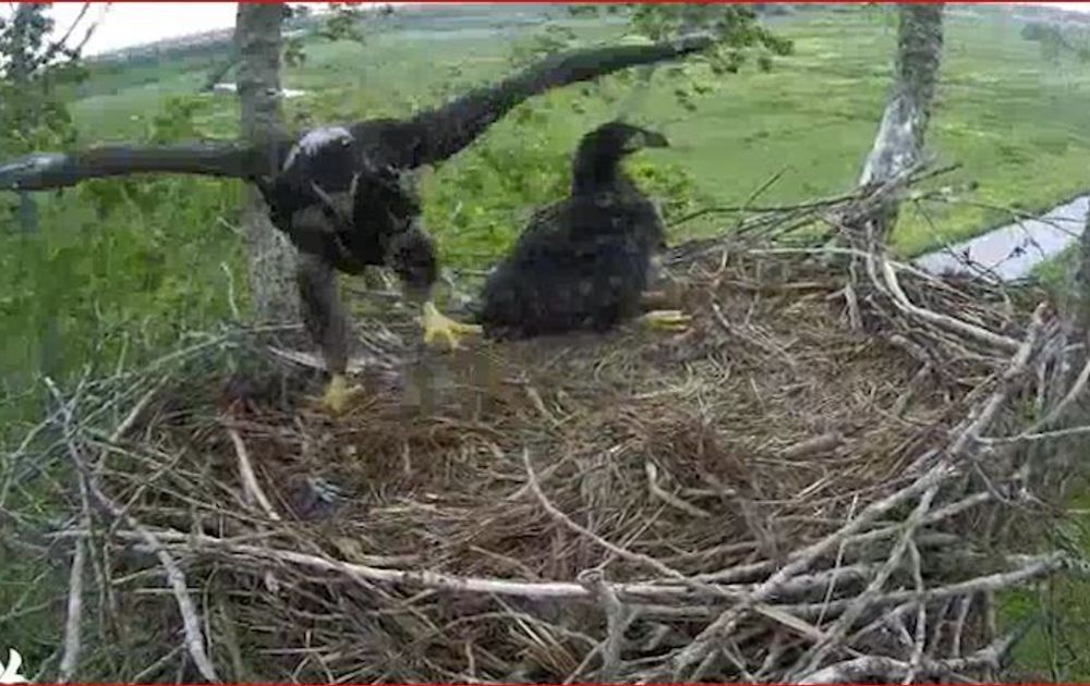 Als kleine grijze zeearendkuukjes strekten ze vanaf de leeftijd van 4 weken al even de vleugels. Hé, die kun je bewegen! Met 5 weken oud werd vleugelstrekken vleugelflapperen.