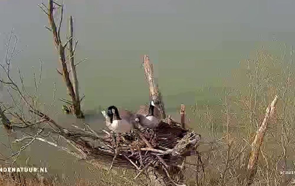Vandaag waren de ganzen enkele malen, en soms langdurig aanwezig op het nest