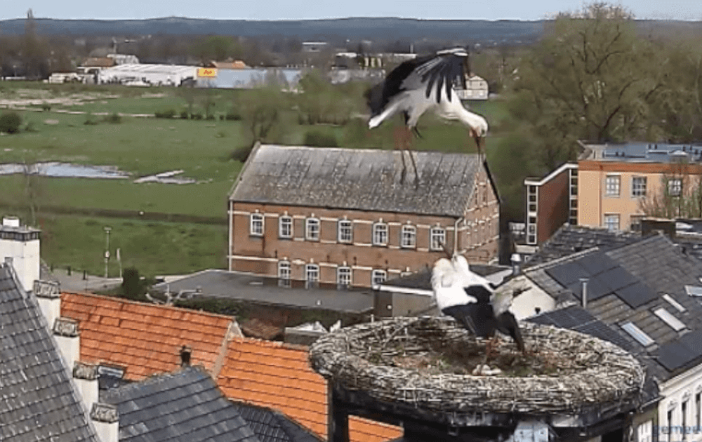 In de blogs van Wim en Leo hebben we kunnen lezen dat het om het behoud van een goed nest tot felle gevechten tussen ooievaars kan leiden. Leo refereerde aan het nest in Beugen waaronder hij pas geleden een dode ooievaar aantrof. Zou Pa hieraan gedacht hebben toen hij over de rand van het nest keek (zie clip).