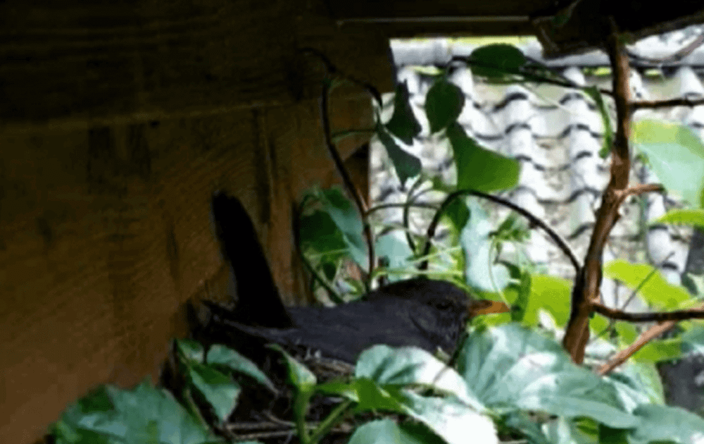 Volgens de camera is het niet heel duidelijk te zien of er nu een ei gelegd is. Maar V vertoont wel broedgedrag. Zal het dan toch wel zo zijn?