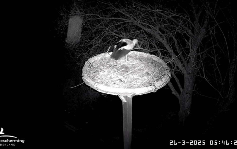 Het ooievaarspaar houdt de spanning er wel goed in. Nadat ze eerst weken op een nabij gelegen nest gebivakkeerd hebben, is de oude Pa steeds meer nachten naar zijn vertrouwde nest teruggekeerd. Maar zal zijn nieuwe eega volgen, en zullen ze uiteindelijk voor Pa’s nest kiezen? Natuurlijk blijven we daarop hopen. We zullen het zien.
