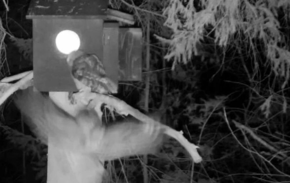Vrouw bosuil gaat zelf op zoek naar voedsel. Man is niet welkom bij de kast zonder muis.