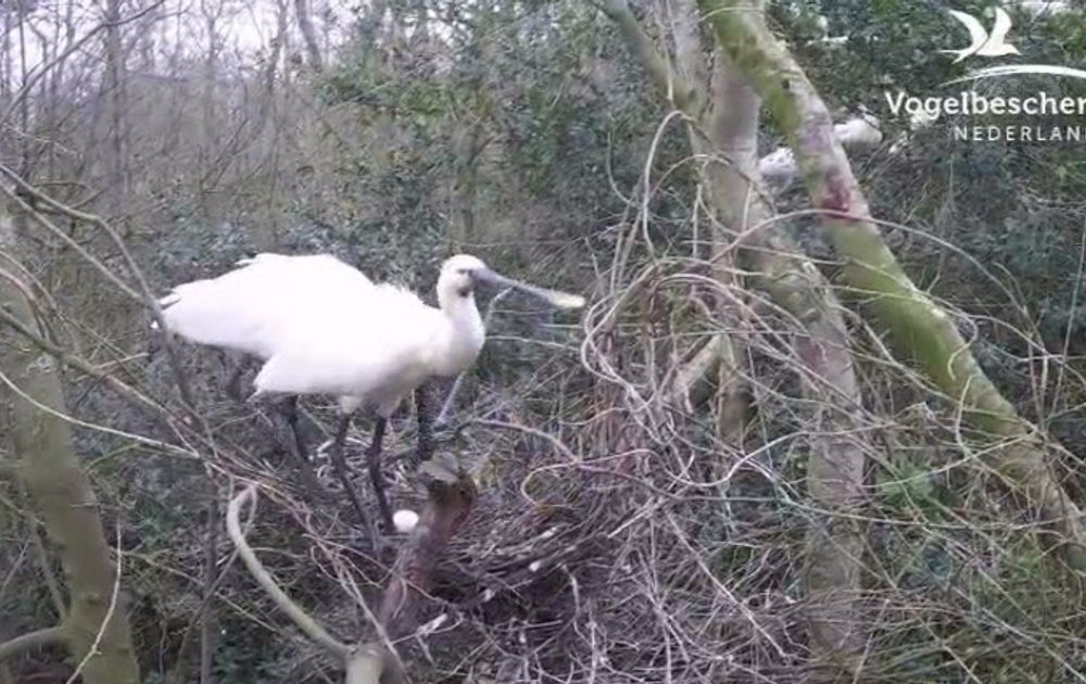 Zorgzaam op het nest terwijl het bij de buren erg druk is.