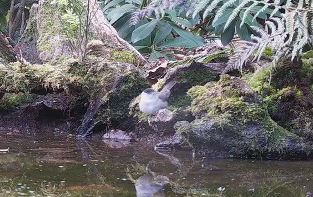 Een merel neemt een bad en weer een nieuw vogeltje bij de vijver!
