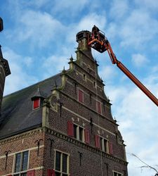 Ooievaars nestelen graag op hoge plekken en vaak op menselijke bouwsels. Ook in Gennep is dat het geval, waar ze bovenop het 17e eeuwse stadhuis nestelen, midden in het drukke centrum.