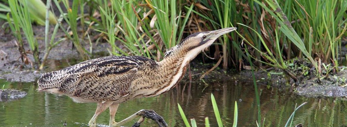 In dit nieuwe stukje natuur is een veelheid aan vogels te verwachten. We lopen langs de viskringloop, waar in het riet vogels broeden als rietgors, rietzanger, kleine karekiet en blauwborst. Vlakbij broedt regelmatig ook een roerdomp, wie weet horen we hem hoempen.