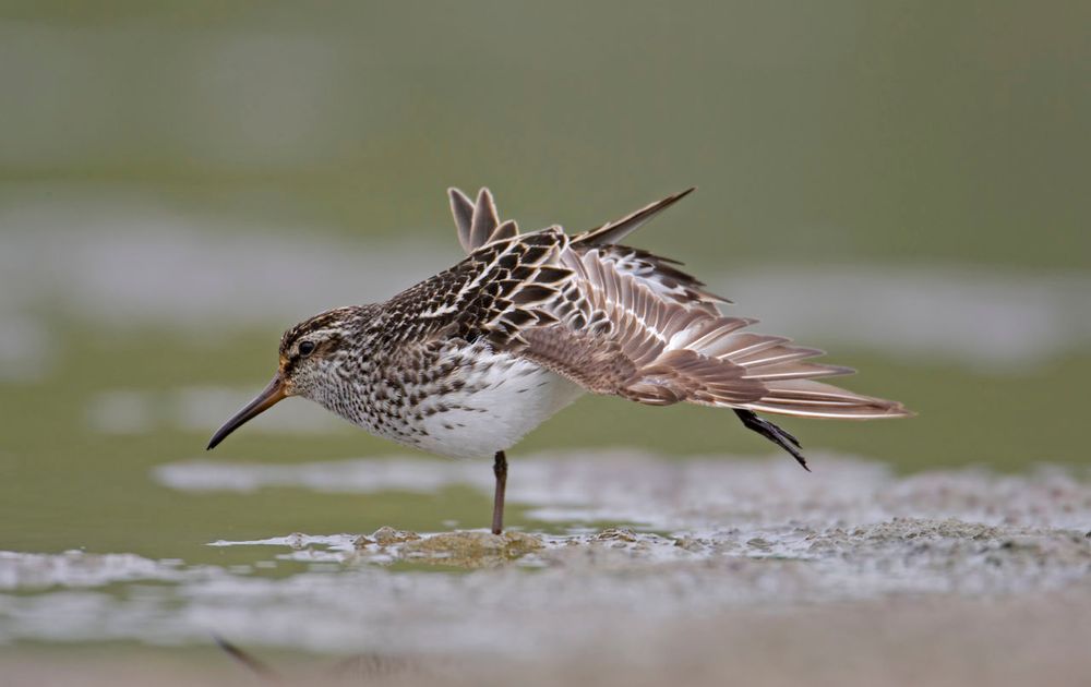 De breedbekstrandloper die tijdens de doortrek Nederland aandoet, profiteert van de aanleg van nieuwe natte natuur, zoals in het kader van de klimaatbuffers.