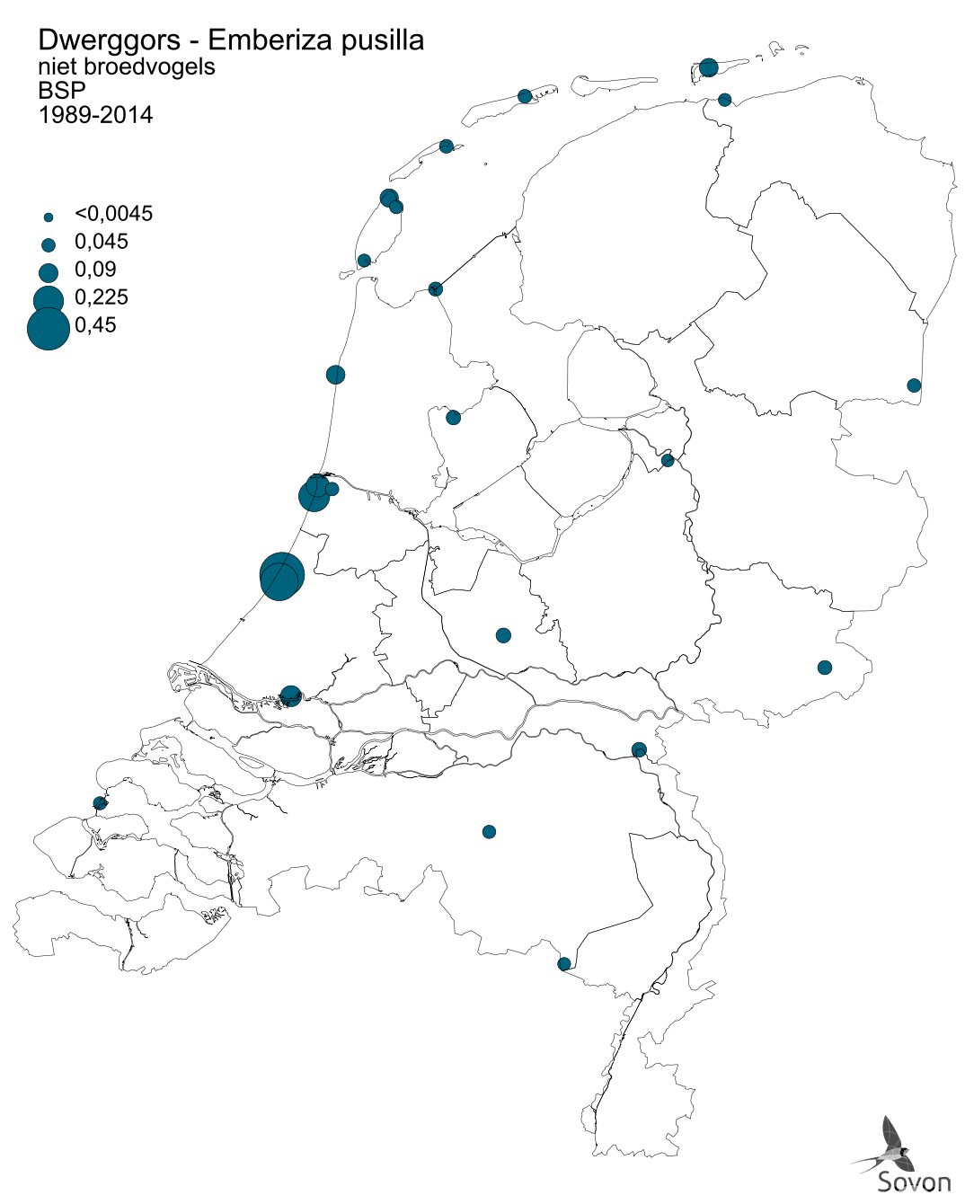 Het overgrote deel van de dwerggorzen in Nederland wordt in de kuststreek waargenomen. Trektelpost De Nolle bij Vlissingen of het Gorzenpaadje op Terschelling hebben bijvoorbeeld een naam hoog te houden. Maar ook goed speuren naar op de grond scharrelende zaadeters op de Maasvlakte kan in september en oktober succes opleveren.