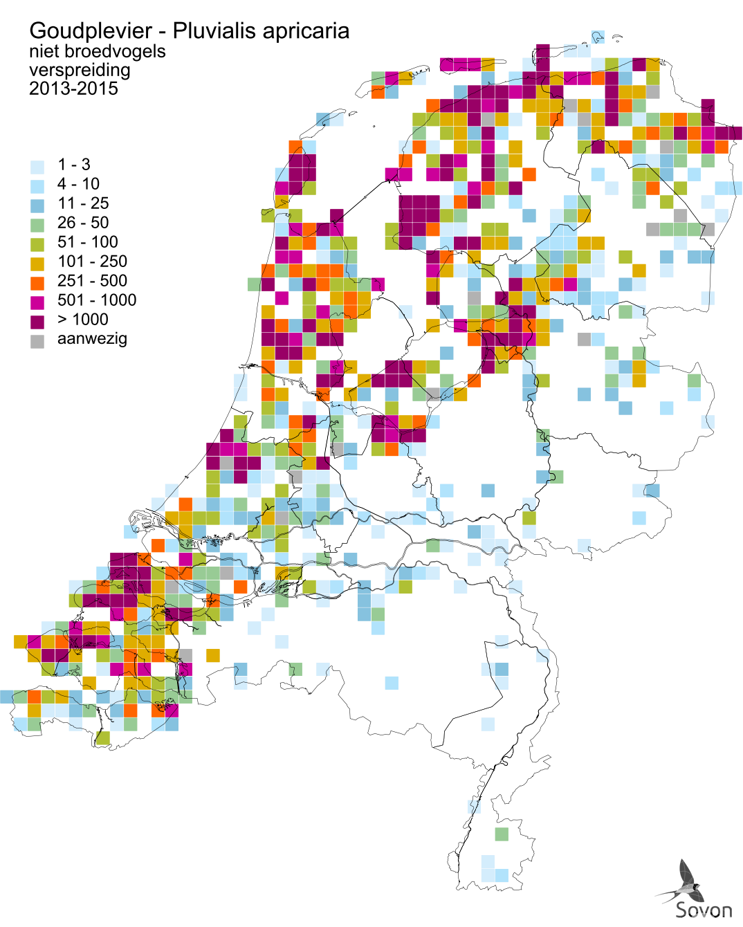 De grootste concentraties goudplevieren bevinden zich in het Waddengebied en open boerenland. Goede plekken zijn Texel, Friesland en Waterland (NH).