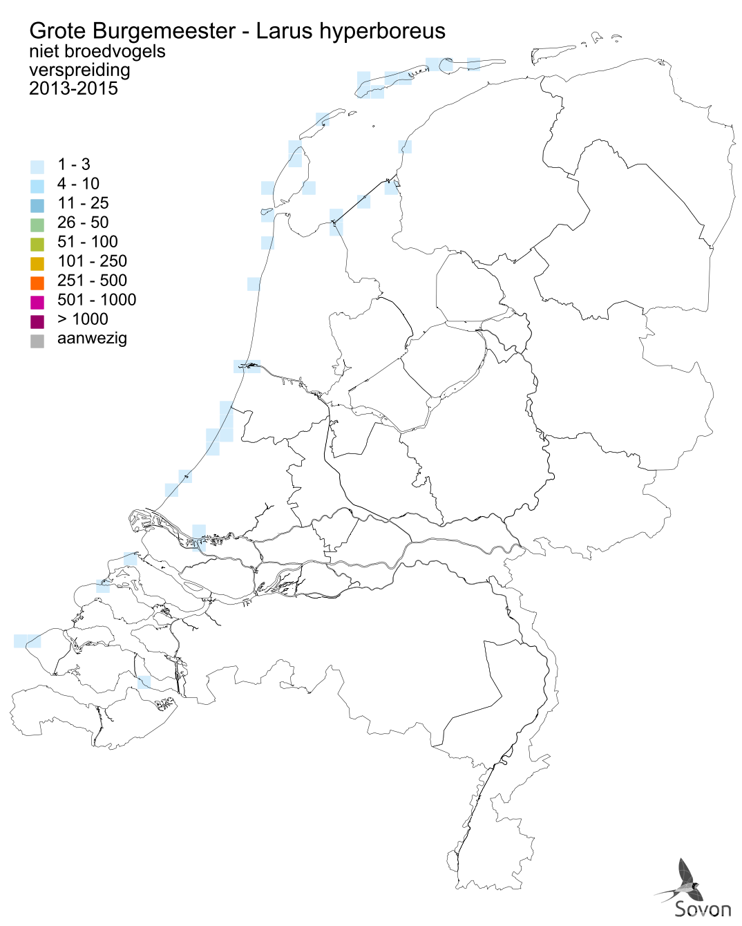 De grote burgemeester kan je met veel geluk in de winter tegenkomen langs de Nederlandse kust of in een zeehaven tussen de vele andere meeuwen.