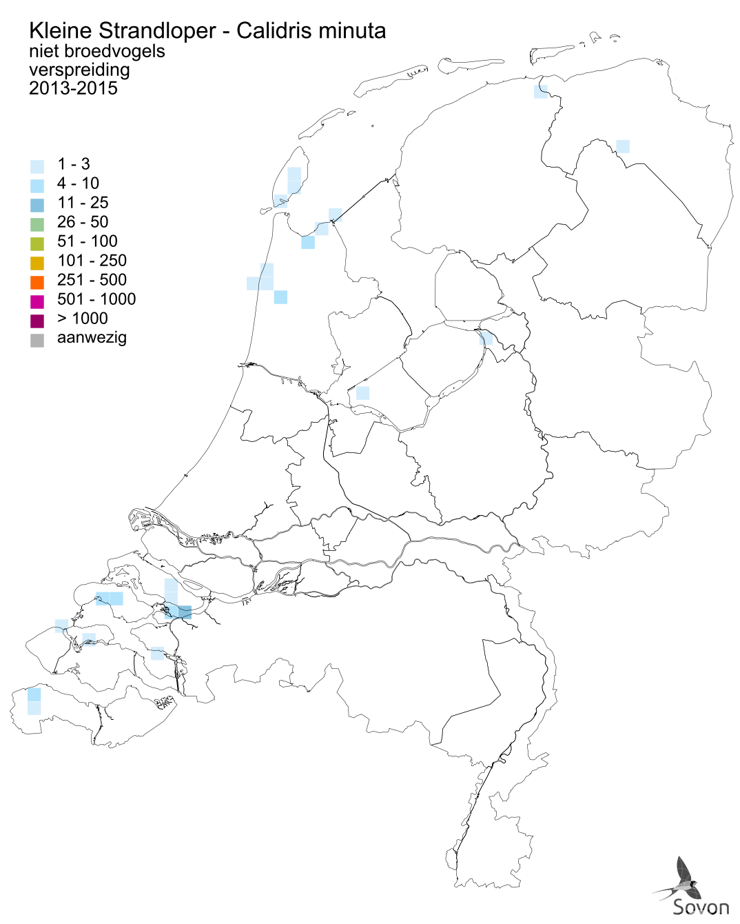 Waddenkust en Delta, maar ook in binnenland, vooral op onder water gezette bollenvelden in augustus en september. In voorjaar veel schaarser.