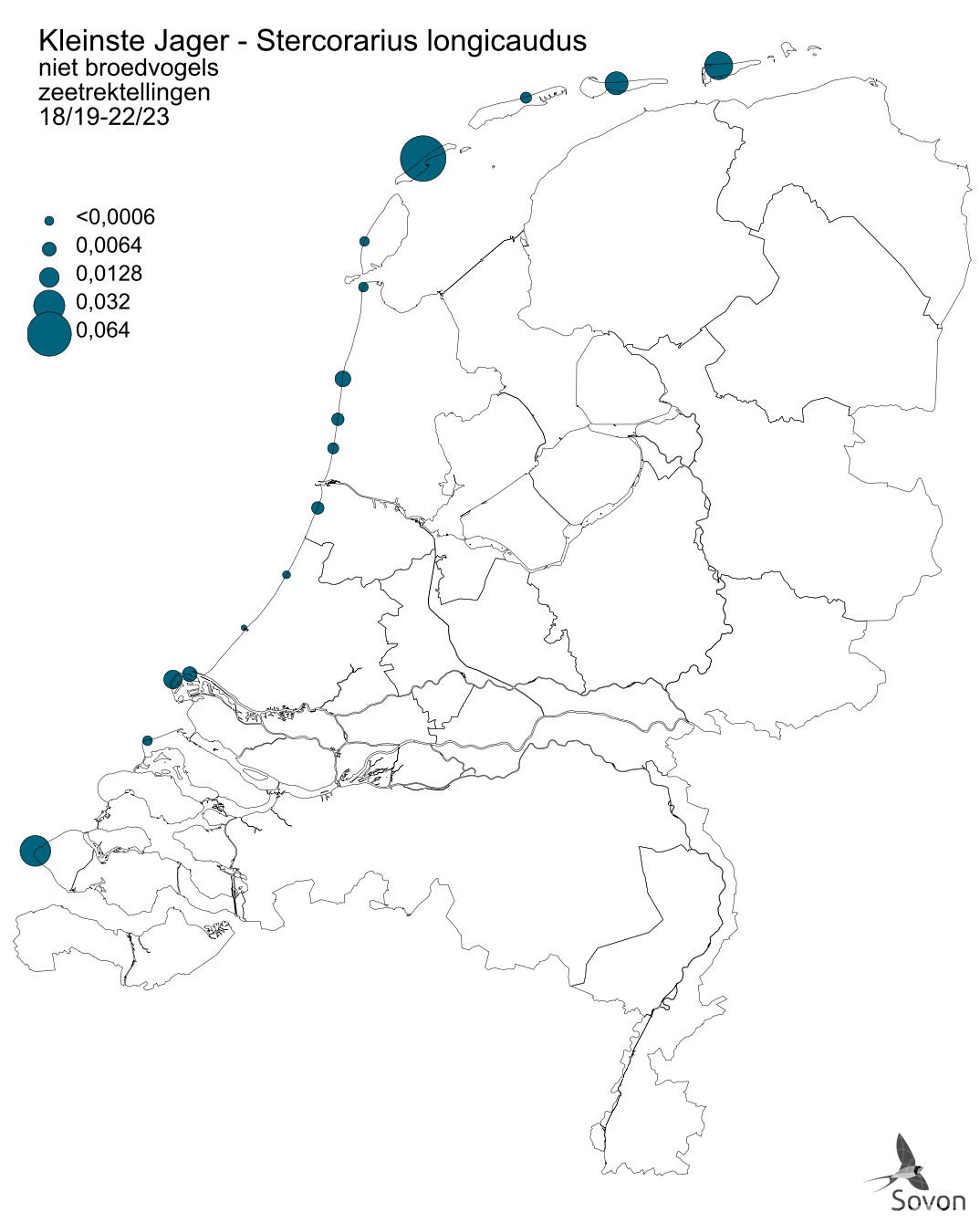 Jaarlijks kleine aantallen, die kunnen variëren vanwege broedsucces in voorgaande zomer en/of noordwesterstormen in september.