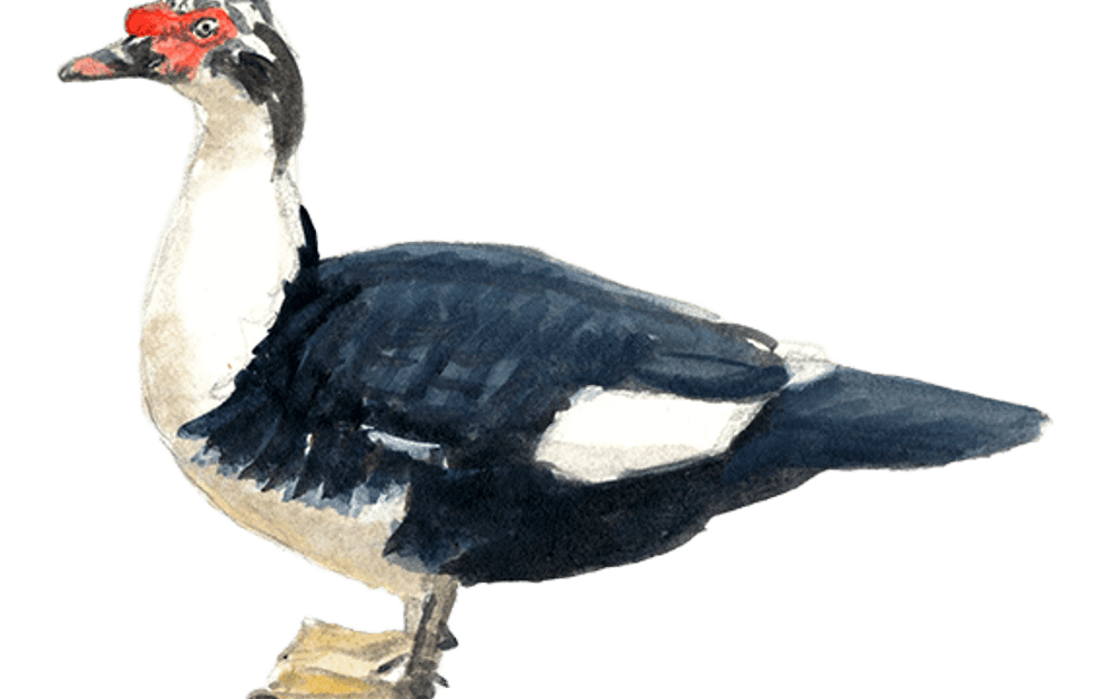Wie kent ze niet? De grote, nogal logge witzwarte eenden met wratterige rode snavel, die vaak bij parkvijvers te vinden zijn. De muskuseend dus, die tegenwoordig ook in Nederland broedt. Dit is de gedomesticeerde vorm van de wilde muskuseend uit Zuid- en Midden-Amerika. Die ziet er compleet anders uit, namelijk grotendeels zwart.