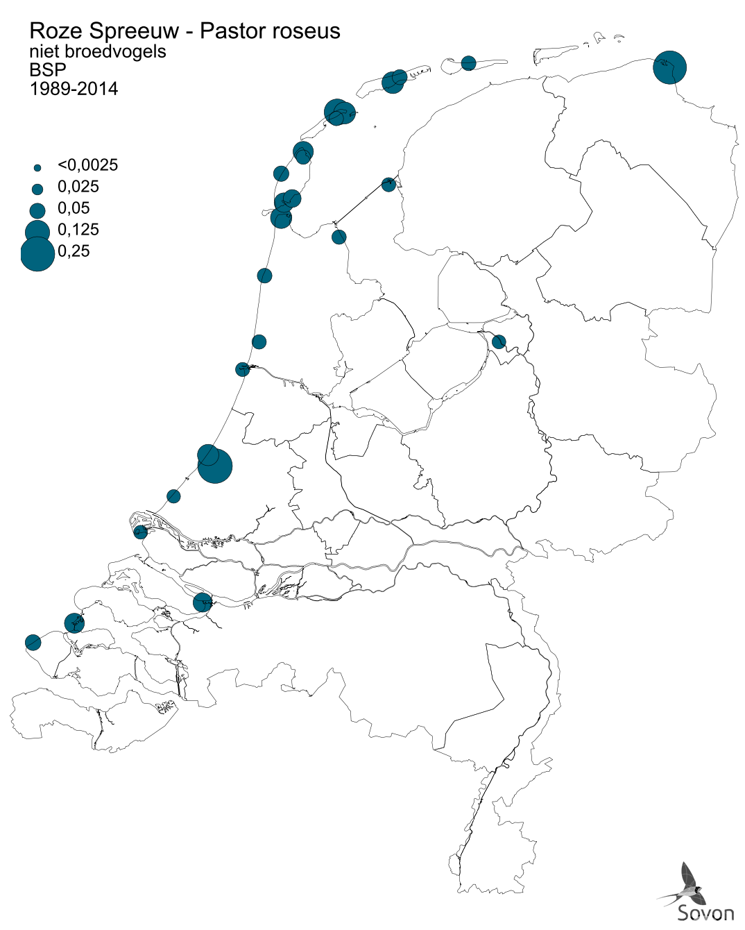 Trekrichting vanuit het broedgebied in zuidoostelijke richting naar India en Sri Lanka. Komt in ons land voor als dwaalgast, in groepen van de spreeuw die langs onze kust trekken.