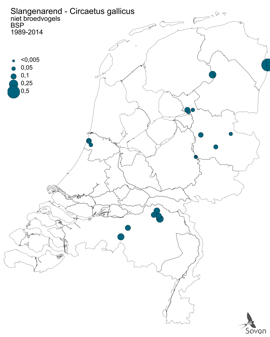 Fochteloërveen, Dwingelderveld en de Veluwe zijn plekken waar in de zomer vaak slangenarenden langdurig pleisteren.