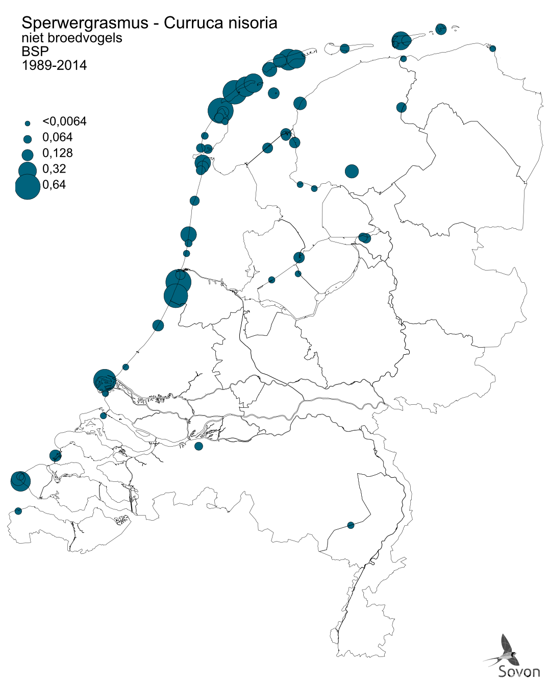 De sperwergrasmus is één van de eerste zeldzaamheden die vanaf half augustus, nog voordat de najaarstrek echt op gang is gekomen, al aangetroffen kan worden. Vooral de Waddeneilanden zijn goede plekken om ze te zien. Doorgaans zitten ze diep verscholen in besdragende struiken, en zijn dan soms te vinden door hun roep, een ratelend, langgerekt "arrrrt-at-at-at-at-at".
