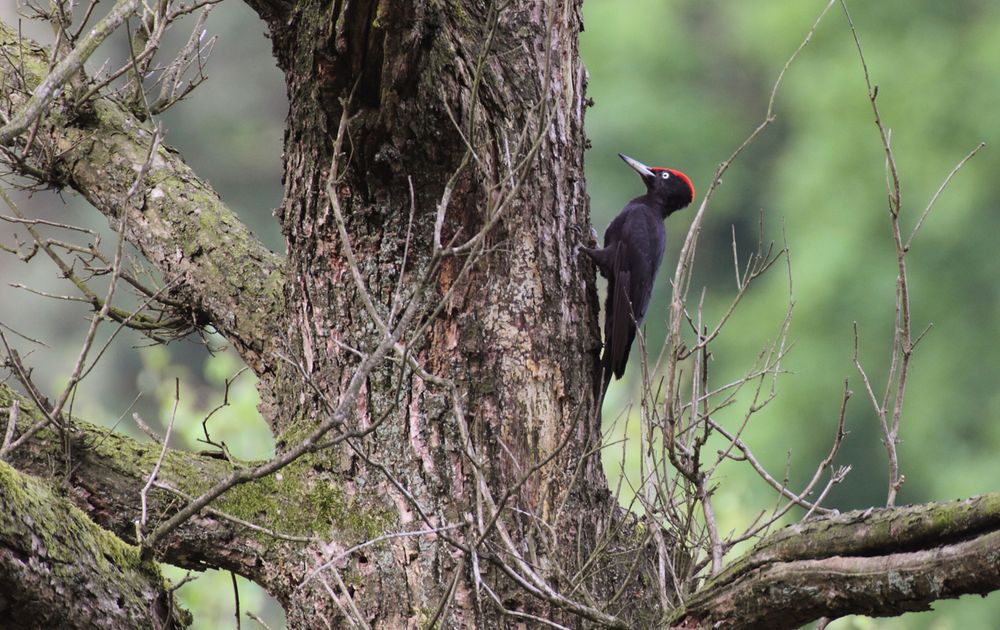 Zoek de zwarte specht in Nederland vooral in de bossen van de Utrechtse Heuvelrug en de Veluwe.