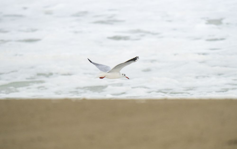 Lekker een poosje op het strand gezeten en geoefend met het fotograferen van vliegende vogels, is best gelukt bij deze kokmeeuw Tenminste ik denk dat het een kokmeeuw is.