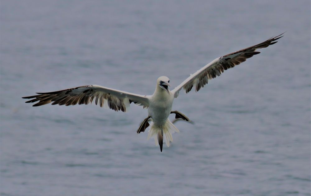Op 25 september maakte ik een zeetocht op zoek naar zeevogels. De vogels werden gelokt met visafval. Naast de vele meeuwen kwamen er soms Jan van Genten op af. De Jan van Genten zijn in vier verschillende kleedvariaties door mij gezien en gefotografeerd. Lastige was in deze dat de vogels kris kras door elkaar zaten in beeld. Soms had ik een Jan van Gent vrij in beeld zoals op bijgaande foto. De landing is ingezet, prachtige vogel.