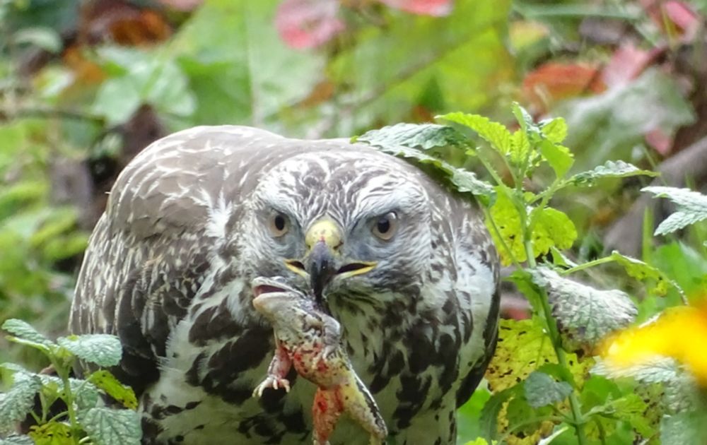 Verrast dat hij bleef zitten toen ik aankwam op m'n volkstuin. Even later snapte ik waarom; kikkerbilletjes laat je niet lopen... Prachtig moment!