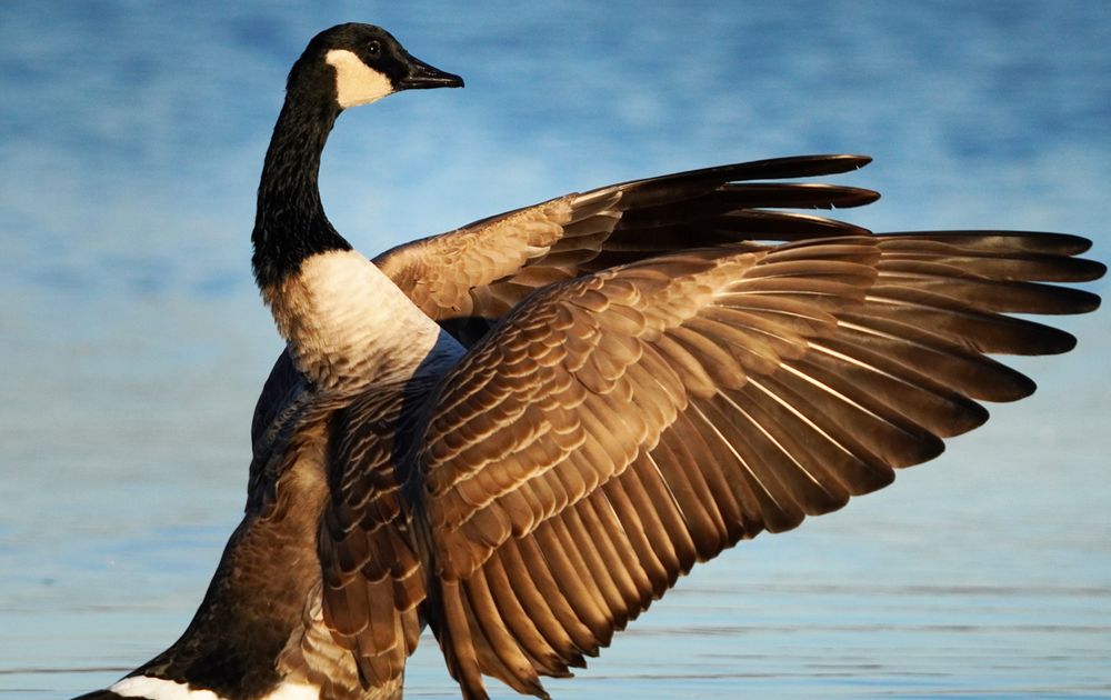 Net na zonsopkomst schudde deze Grote Canadese gans even goed met zijn veren.