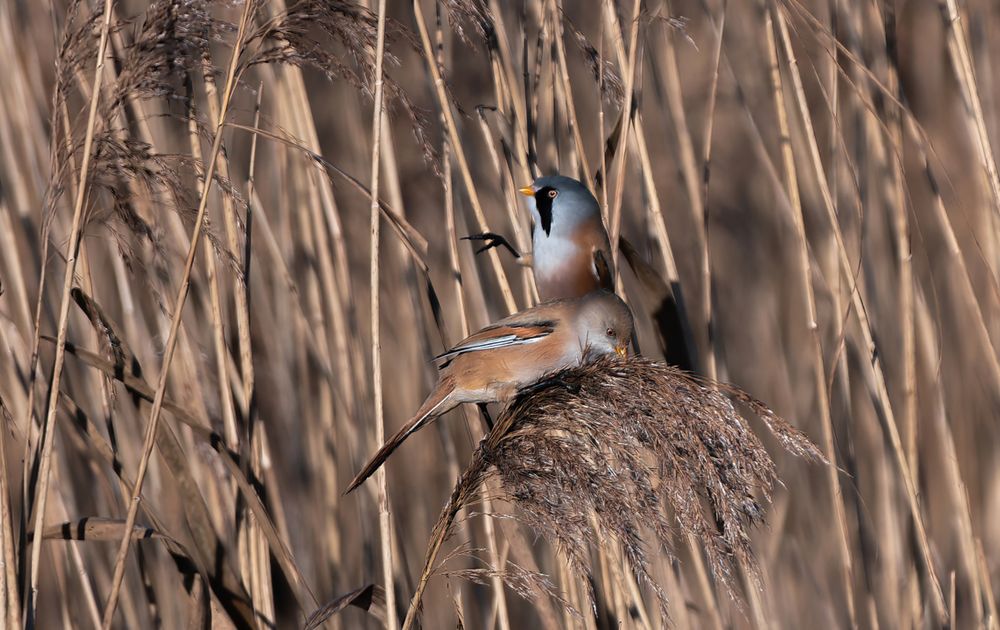 Door het gewicht tijdens de landing boog de rietpluim door en passeerde zo het mannetje op het moment dat ik afdrukte.