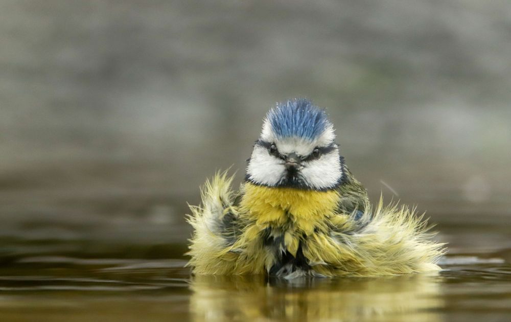 Pimpelmees tijdens het badderen.