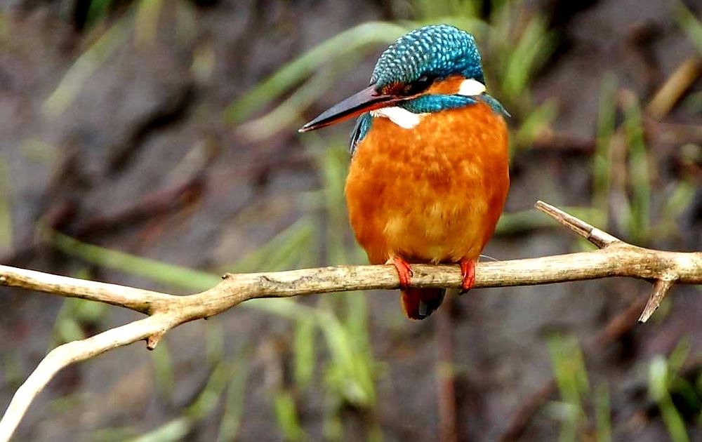 Kleine visjes zijn niet veilig als deze kleurige visser boven het slootje zit.