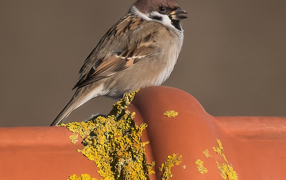Op een zonovergoten plekje op de nok van het pannendak... even een pauze nemen!