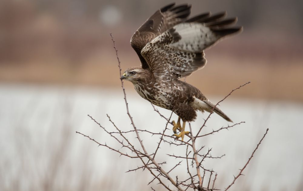 Vanuit de auto deze foto kunnen maken, de buizerd bleef best lang zitten maar uiteindelijk vloog hij toch weg.