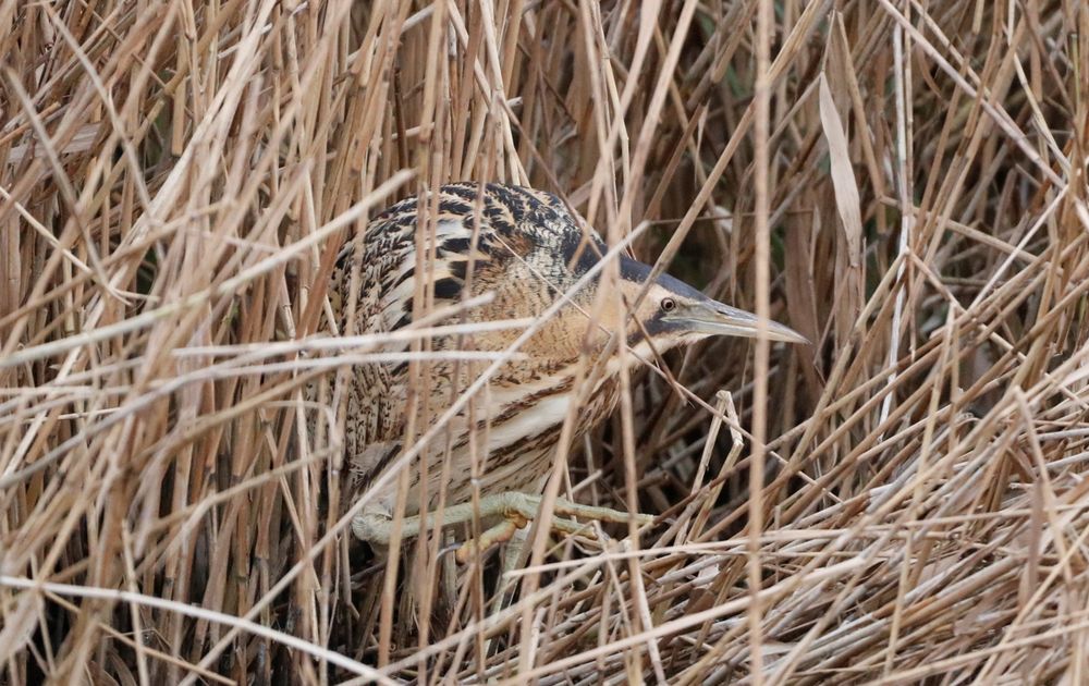 Deze schuwe moerasbewoner voelt zich thuis in een van de grote stadsvijvers. Ze trekt haar niets aan van het omgevingslawaai en foerageert in het riet naar vis. Deze foto is vanaf een fietspad genomen.