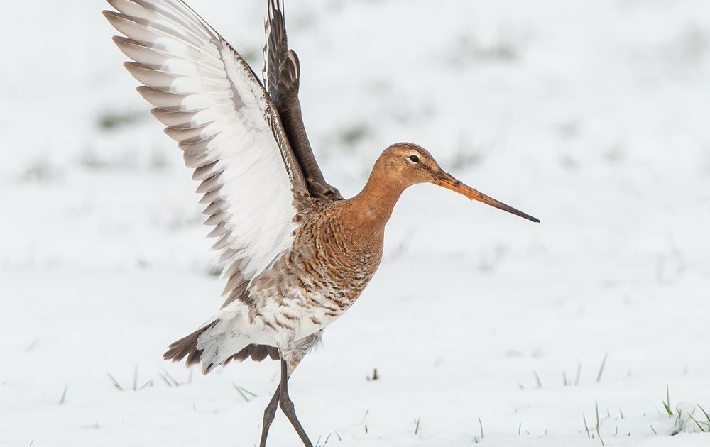 Het was 1 April een schitterend moment om Grutto,s in de sneeuw vast te leggen,wat ik nog nooit eerder heb meegemaakt.