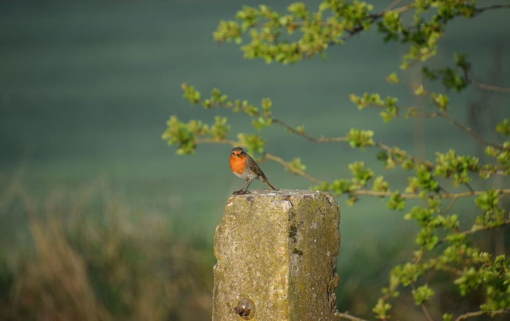 Deze roodborst keek recht in de ochtendzon waardoor hij of zij tot zeer nabij benaderbaar was.