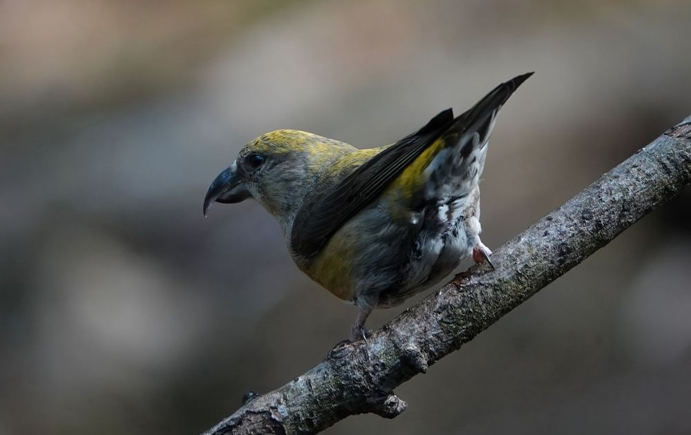 Vanaf een tak kijkt het vrouwtje kruisbek of ze veilig wat kan drinken bij de vijver. (N.B. Deze foto heb ik zojuist ook ingestuurd, maar per abuis mét watermerk. Die is hier verwijderd.)