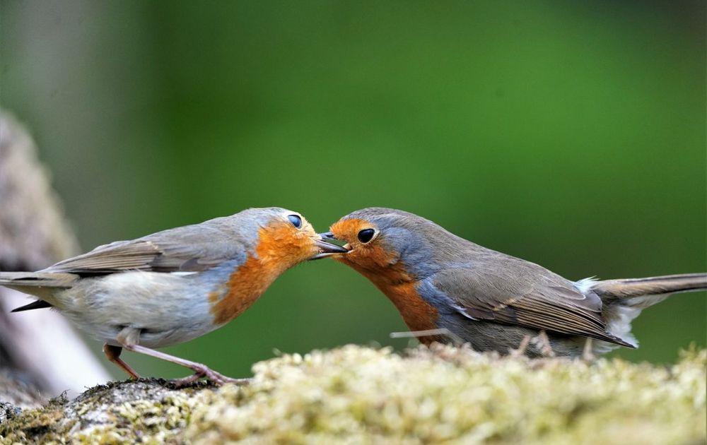 roodborstjes doen net als ijsvogels: het mannetje biedt het vrouwtje voer aan om geaccepteerd te worden als partner om voor nageslacht te zorgen