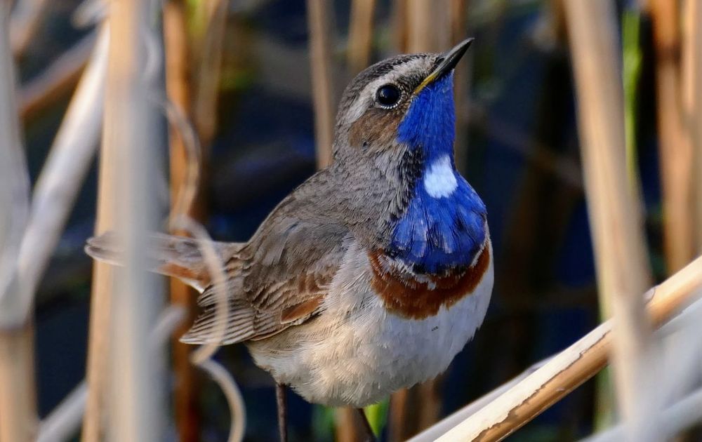 Trotse blauwborst in het riet.
