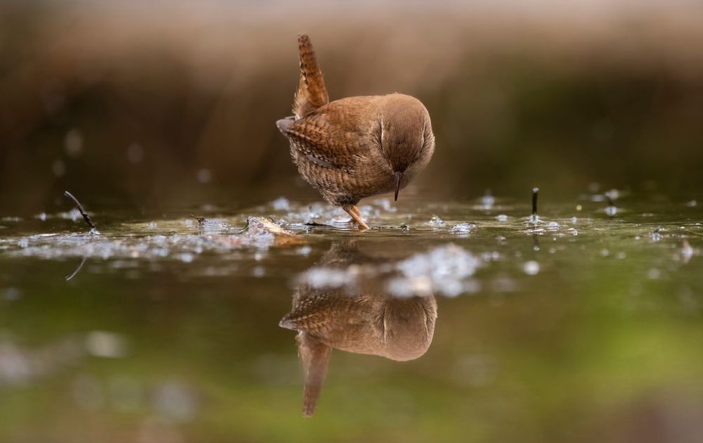 Dit winterkoninkje was druk bezig met het zoeken naar muggenlarven in ondiep water. Een mooie en sfeervolle momentopname...