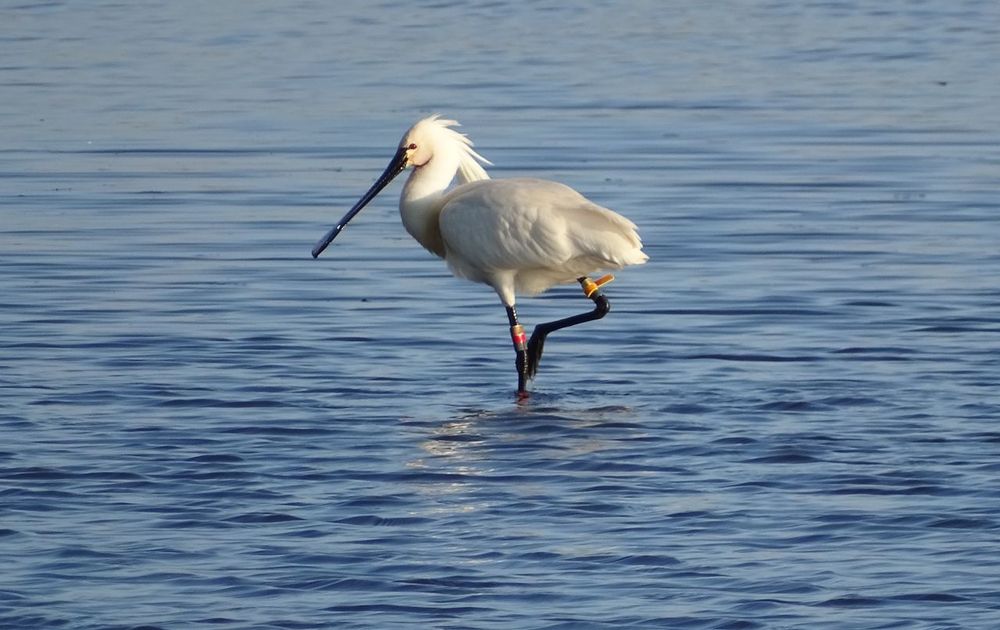 Deze lepelaar was in zijn eentje aan het zoeken naar eten aan de Bombaij in Doezum. Een locatie waar ik nog nooit eerder één gezien heb. Het is nu paartijd voor deze watervogels en daarom kon ik zien dat dit een mannetje is. Omdat mannetjes tijdens deze periode een rode vlek in de nek hebben en omdat er lange plukjes op het hoofd aanwezig zijn.