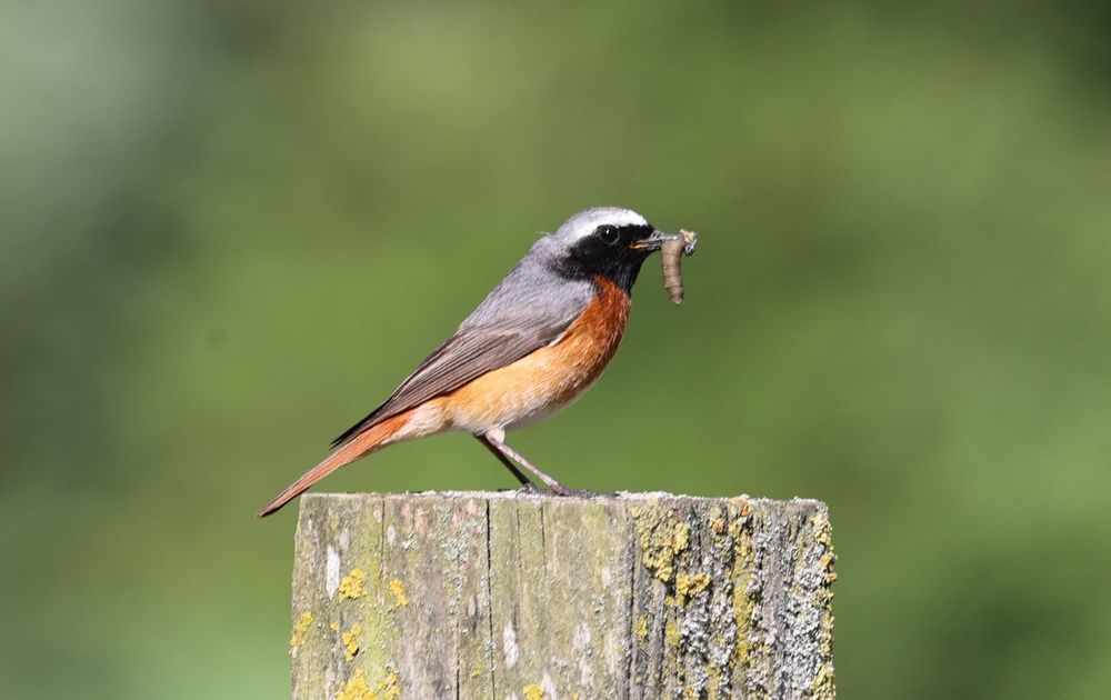 Gekraagde roodstaart met worm