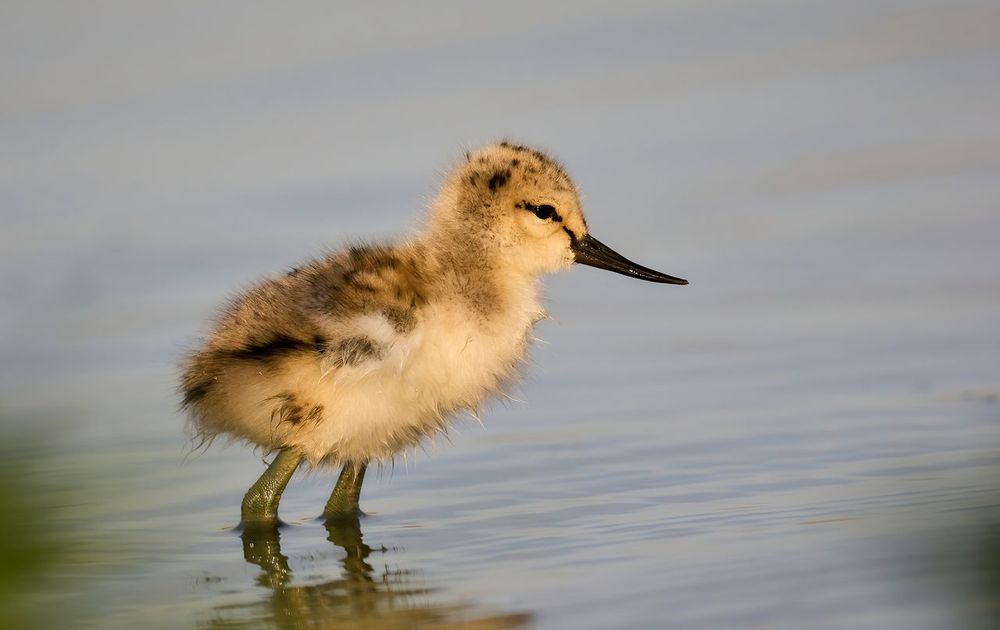 Heerlijk om zo'n klein Kluutje langs de waterrand te zien lopen om ervaringen op te doen. Vanaf een kleine afstand kijken de ouders toe of het goed gaat.