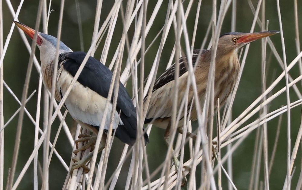 Wat een geluk en genot om een paartje van deze kleinste reigers door het riet te zien klauteren. Ze zijn net zo behendig als apen en worden door sommigen daarom ook wel rietapen genoemd, een toepasselijker naam.