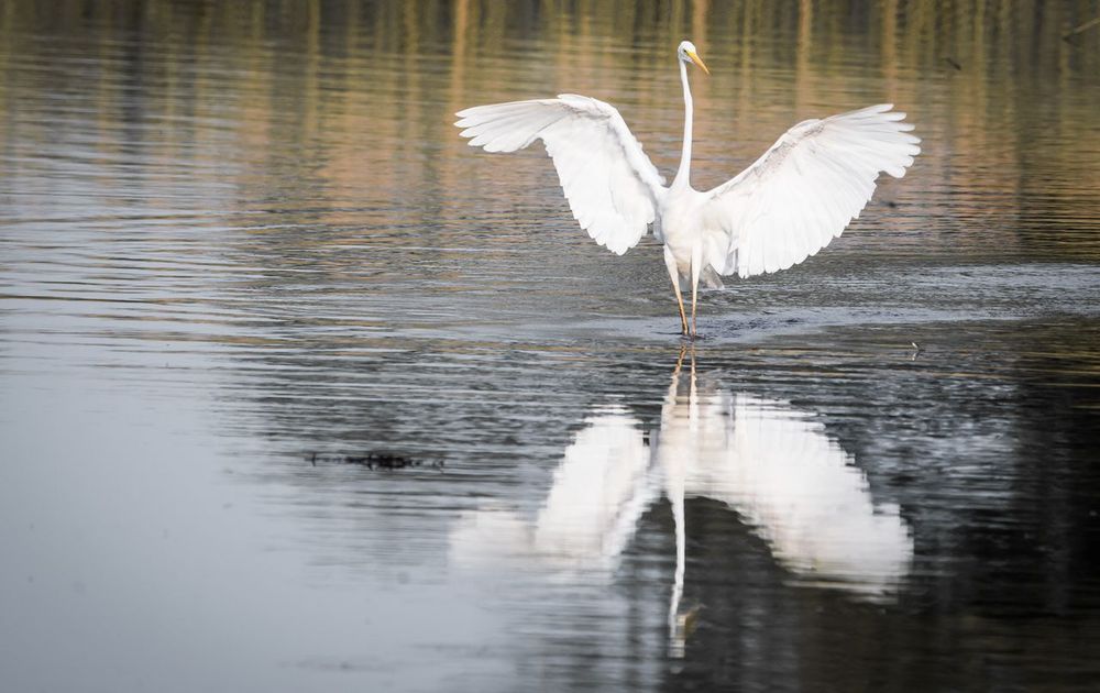 Deze zilverreiger konden we prachtig observeren vanaf de kant. Hij was rustig bezig met foerageren en af en toe strekte hij zijn vleugels breed uit.